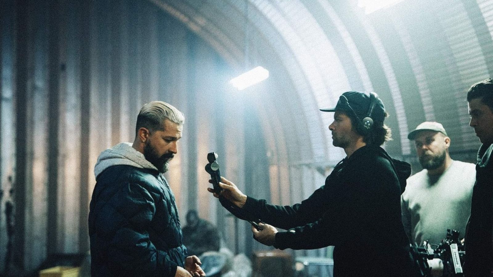 Trying to squeeze in four locations and unit moves across one day isn’t without it’s compromises of course and we did have to pick our battles on which scenes we could light properly, but gaffer Jazz Bhalla made a much appreciated effort in the schedule we had. Inside the gym we were in a real pinch and only had time to unscrew some of the more frontal overhead house lights - we decided to cover the scene just on the Bolex, loaded 500T to contrast our white balance against the daylight balanced practicals for effect, dragged in a flag, and made the most of it"
